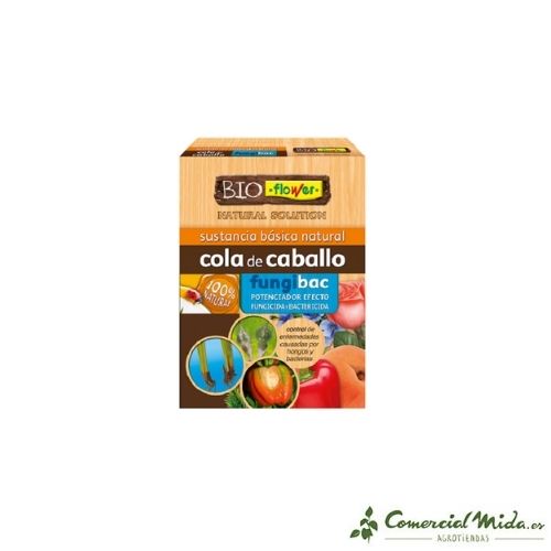 Fungibac cola de caballo de BioFlower es un potenciador y fortalecedor de los mecanismos de defensa de los cultivos frente a enfermedades causadas por insectos, hongos y bacterias. Su acción se activa gracias a la elevada cantidad de ácido salicílico que elabora y concentra en los tejidos de la planta cola de caballo, la cual se ha obtenido por tratamiento acuoso de fracciones de la planta. Contiene un alto nivel de minerales (sílice, sulfato de potasio, calcio, cinc, magnesio e hierro, entre otros) y funciona como buen cicatrizante y regenerador. Es eficaz en la prevención y lucha de las enfermedades relacionadas con hongos como el mildiu, roya, oídio o chancro. Su uso está recomendado para jardín y huerto urbano, garantizando una práctica de agricultura ecológica y libre de compuestos químicos perjudiciales para animales, plantas y el medioambiente.