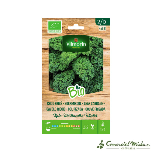 Las semillas de Col rizada Kale de Vilmorin dan una planta crucífera de la misma familia que el brócoli, la coliflor, y otros. Esta planta cuenta con unas hojas de color verde intenso y textura áspera.